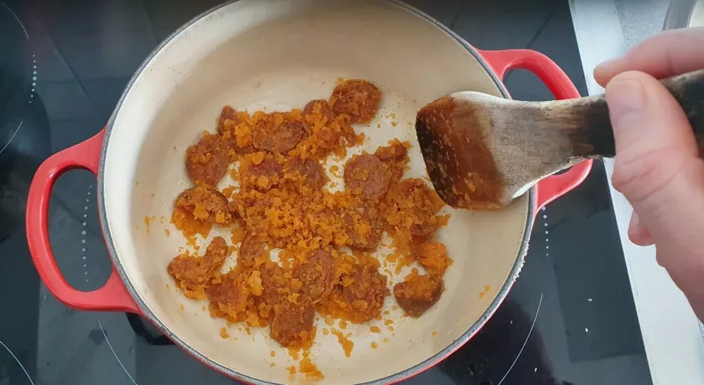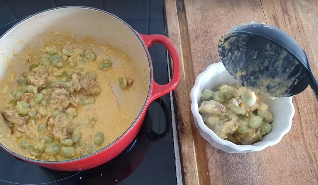 It was during an evening out at a tapas bar that I first tasted this casserole of broad beans with cream and chorizo.