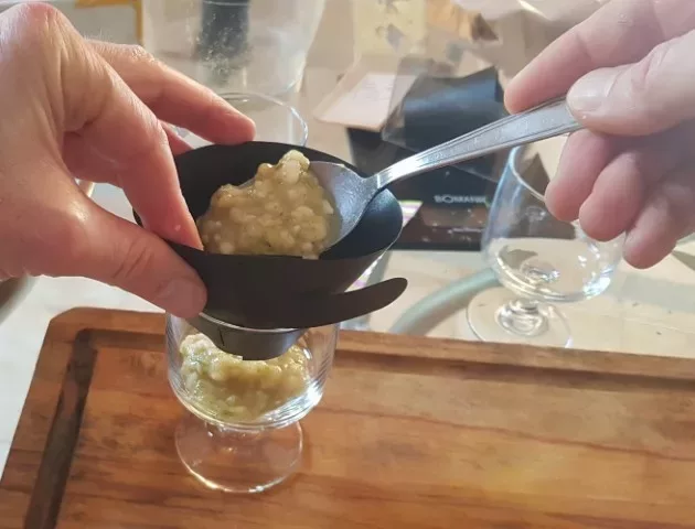 As you’ll see, this banana-lime, chocolate, and hazelnut verrine requires quite a bit of preparation and some baking equipment, but the result is well worth it, and my guests were truly impressed…