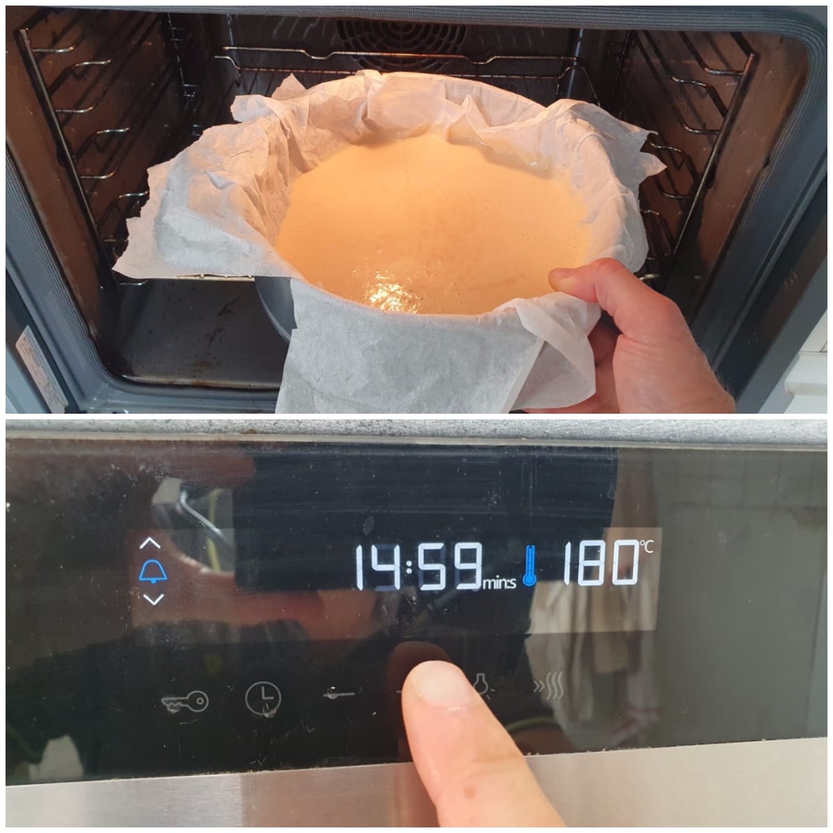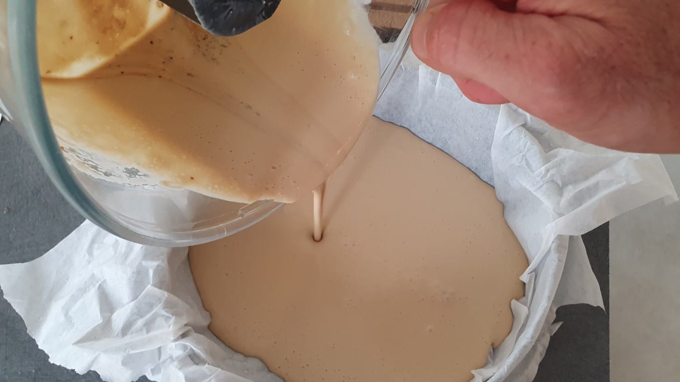 One of the unique features of this tarta de queso is that it has no crust. So to make this cake, simply pour the batter into a soufflé dish and bake it in the oven. It’s a fairly simple recipe to make; you just need to pay attention to the two baking temperatures and keep an eye on the second one toward the end to adjust how brown it gets.