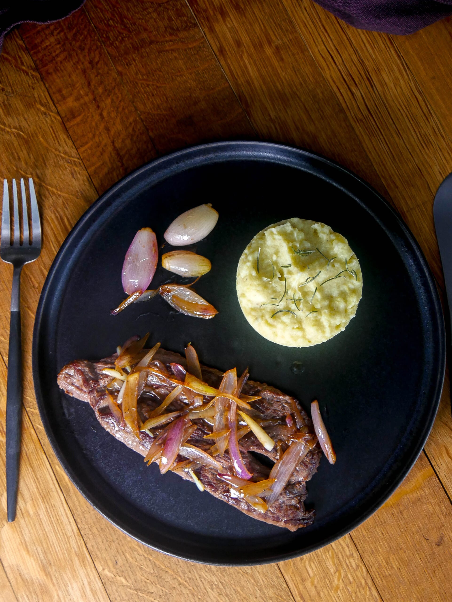As a side dish, I recommend serving this sirloin with shallots alongside mashed potatoes. Simple and traditional, the creamy mashed potatoes will pair perfectly with the juicy meat and its shallot sauce.
