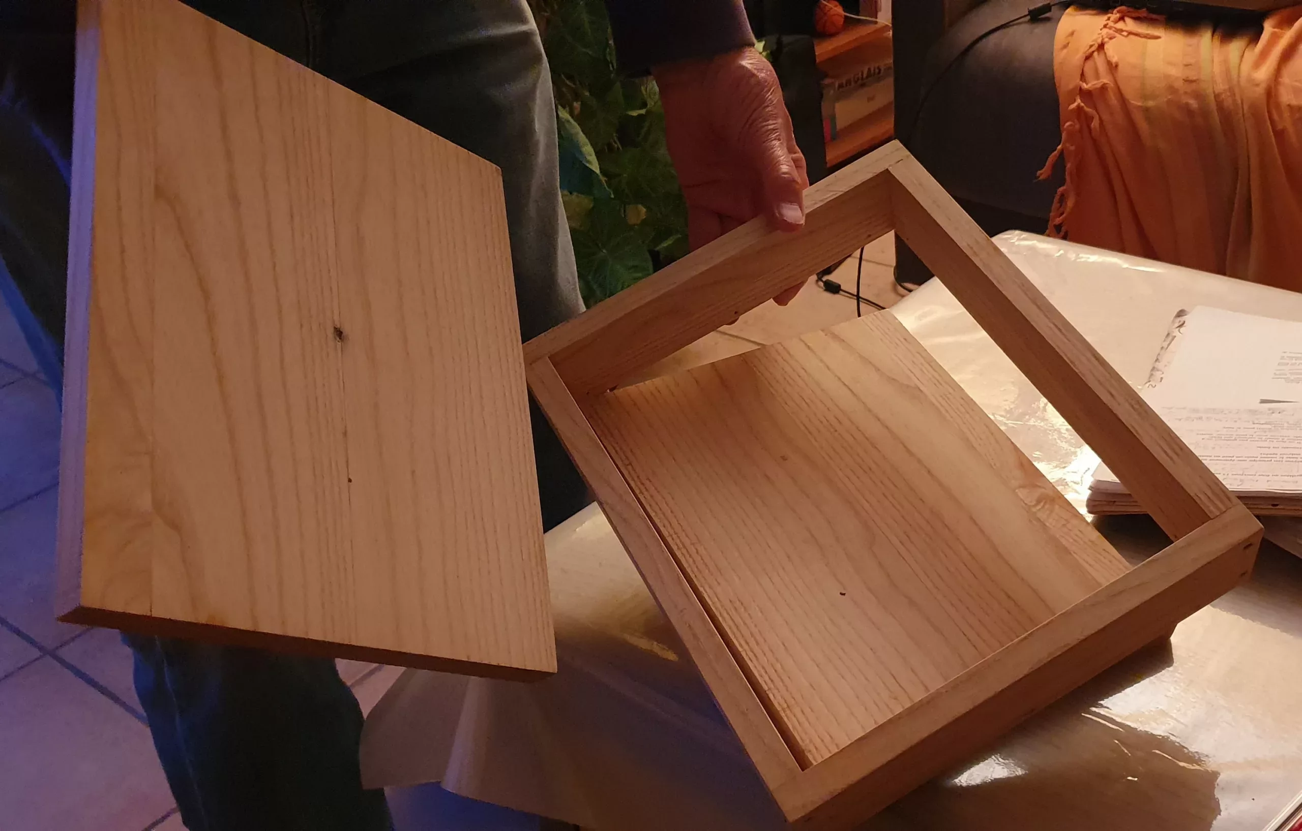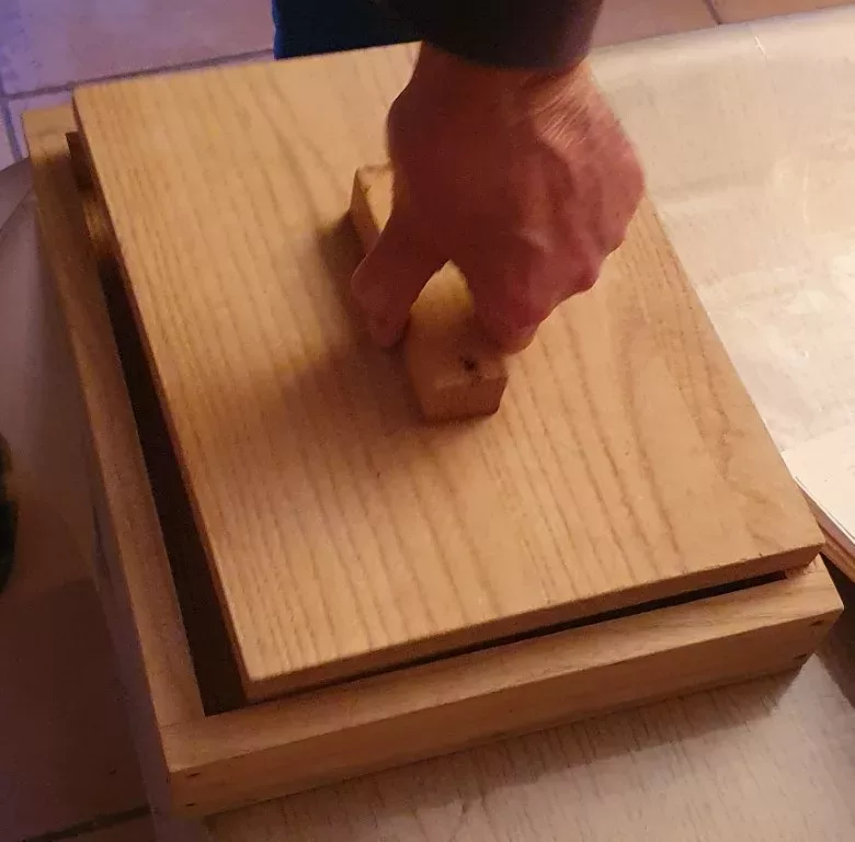 - a nougat mold, the essential tool for making your nougat, which holds all the ingredients and then presses them together. The nougat mold consists of three wooden pieces: a removable base, a ring that fits over the base, and finally a lid with a handle, which is used to press the nougat.