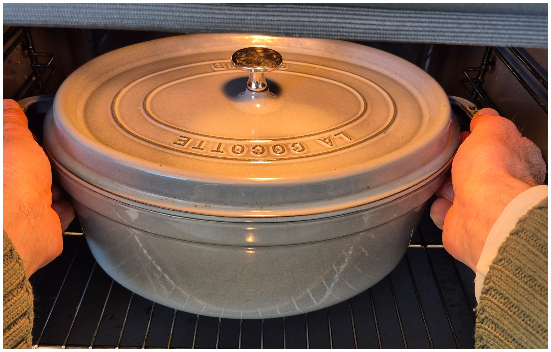 To ensure gentle, slow cooking, the casserole dish is placed in the oven. Ideally, you should have one. If you don’t have an oven, you can simmer the meat on your stovetop, but over very low heat so the contents of the casserole don’t stick.