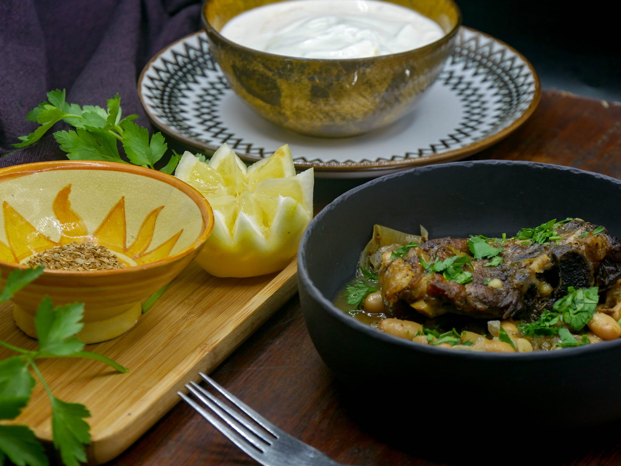 Here is my recipe for braised lamb neck with white beans and yogurt—an irresistible, slow-cooked meat dish bursting with flavor. It combines quality local ingredients—lamb and beans—with flavors from the Mediterranean and the Middle East.