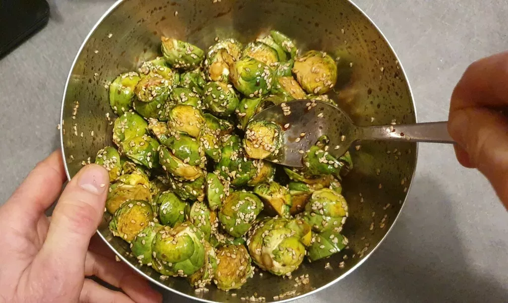 If, like me, you’re struggling to come up with ideas for cooking Brussels sprouts and are looking for an easy and original recipe, you’re going to love these Brussels sprouts with soy sauce and sesame!