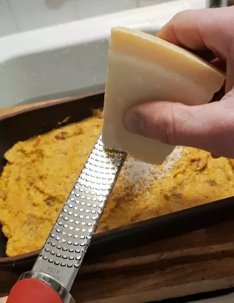 - 5Once cooked, you can easily separate the flesh from the skin using a tbsp. The skin of the pumpkin is also edible, but personally, I prefer to leave it off when making a gratin!