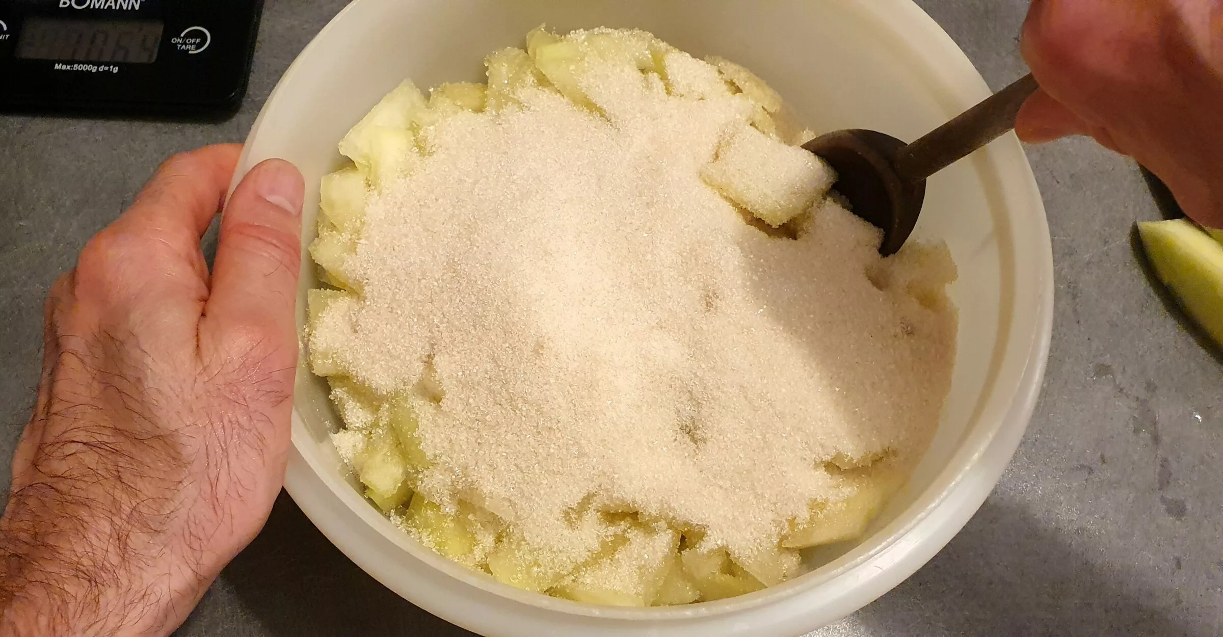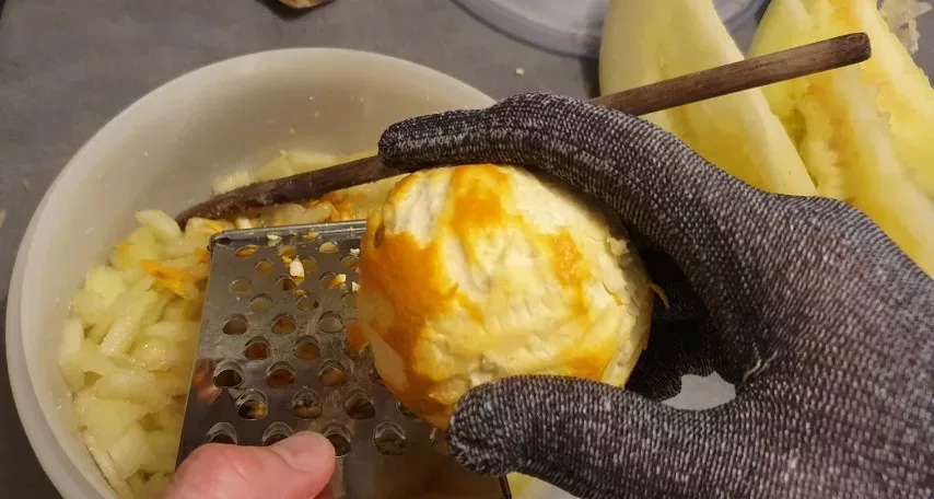 Maintenant je vais m’y mettre avec la pastèque à confiture que tu m’as donnée.