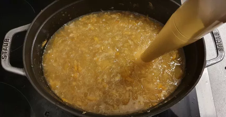 Autre petite remarque; il est dommage de mixer car en Provence cette confiture est appelée le fruit confit du pauvre on la déguste avec ses morceaux ou on utilise les cubes de mereville confits pour faire des cakes.