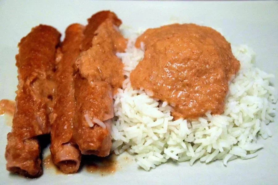 Serve with rice, generously topped with sauce.This dish tastes even better when reheated.