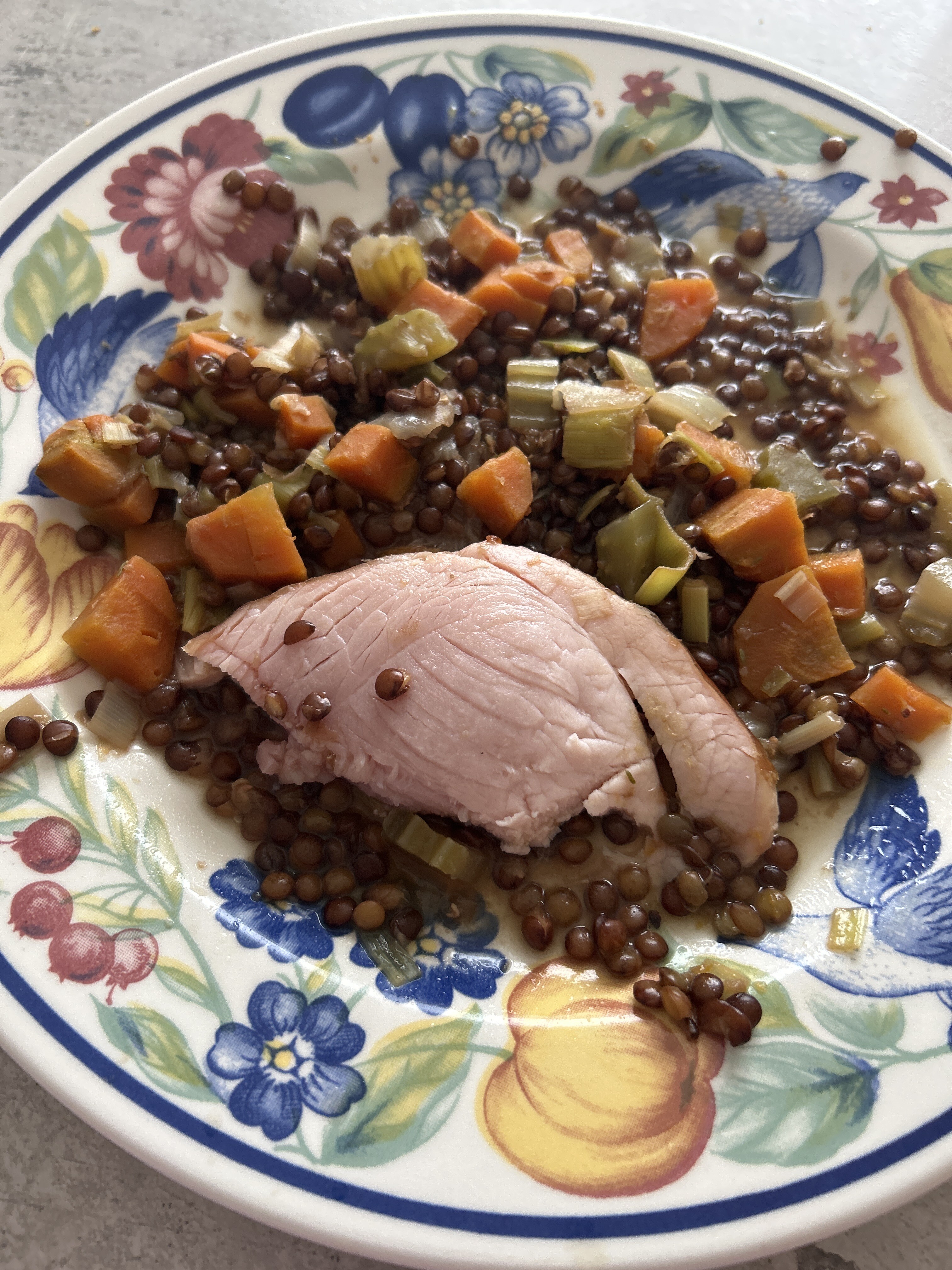 Bonjour Catherine, merci pour la photo et la suggestion ! Je suis ravi de voir mes lentilles aux légumes dans une si jolie assiette pleine de couleurs, et agrémentée d’un produit local que je ne connaissais pas et qui a l’air fort bon… La noix de jambon ça a l’air d’être un morceau maigre et goûteux, et fumé si j’ai bien compris ! Miam il faudra que j’essaie à mon tour 😋