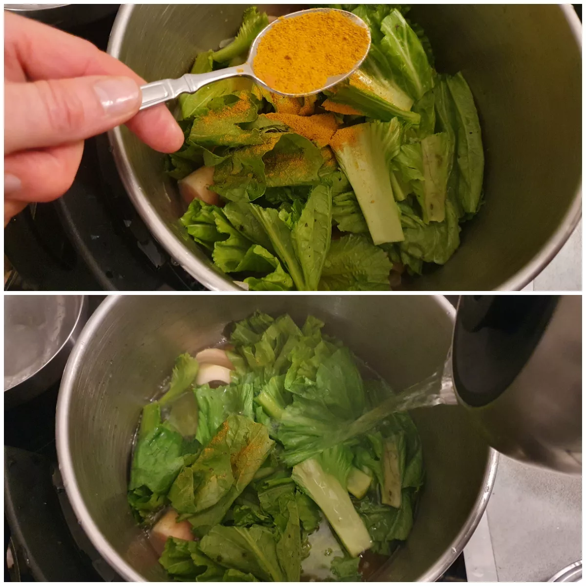 Following the market vendors’ advice, I tried making this mustard greens and turmeric soup, and I thought it was delicious!