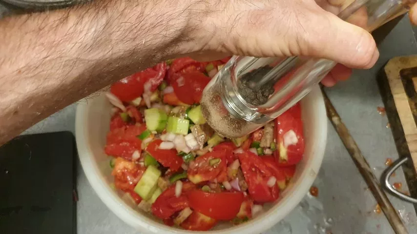 Here is my authentic recipe for Andalusian gazpacho (or "gazpacho" in Spanish), which a Spanish friend taught me. This traditional recipe highlights fresh vegetables (tomatoes, cucumbers, green bell peppers)—which should be chosen very fresh—extra virgin olive oil, and sherry vinegar (known as "Jerez" to the Spanish).