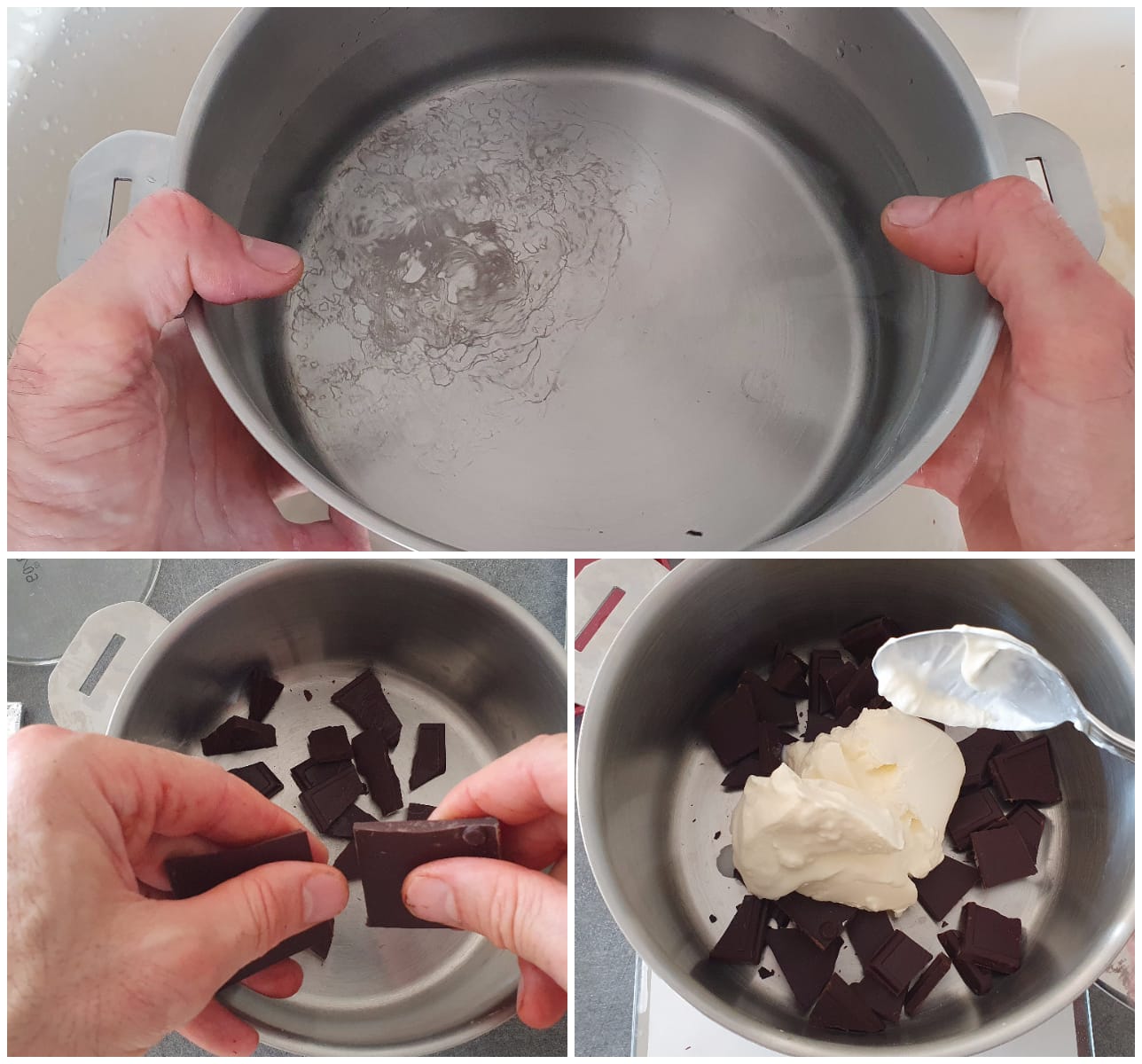 - But you can also opt for the "banana++" version, which starts with a layer of mashed banana, followed by a thin layer of chocolate ganache, and finally the banana slices.