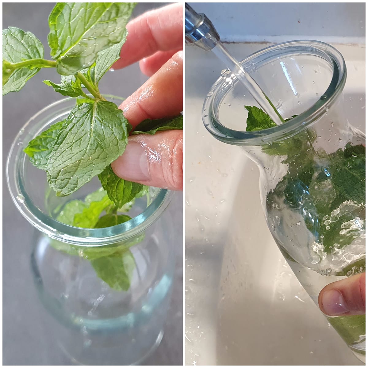 As for the ingredients, you can use lemon or lime—both work great. And as for the mint, you might have some in your garden or on your balcony, but you can also easily find it at your local produce store or supermarket.