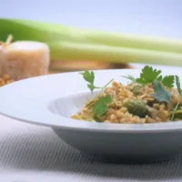 This dish is both visually appealing with its various shades of green, and a delight to eat! The combination of sheep’s milk cheese and leeks works wonders. The green olives provide a pleasant contrast to the creamy rice, thanks to their slightly tangy flavor and firm texture.