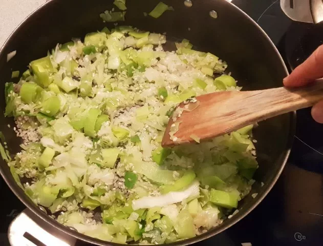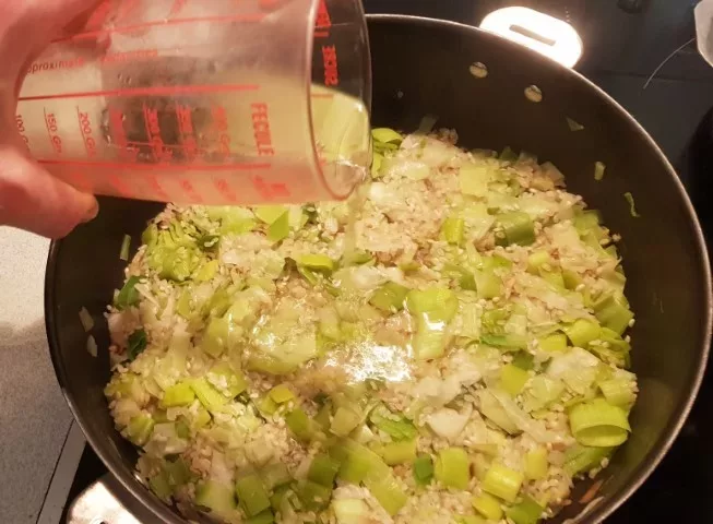 In terms of difficulty, this leek, sheep’s milk cheese, and olive risotto is very simple to prepare and requires only ingredients that are easy to find. However, make sure you set aside enough time for cooking, as it takes quite a while. And yes, that’s the price you pay to ensure the rice becomes tender and gradually absorbs the aroma of the broth and vegetables.