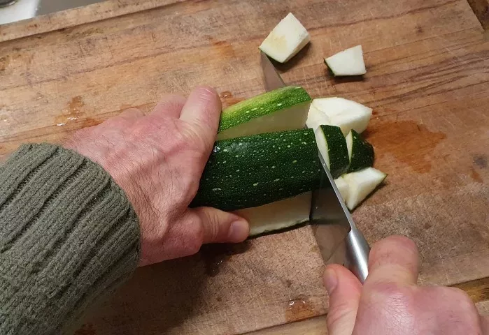 - 1Cut the zucchini lengthwise into 4 or 6 pieces, depending on their size.