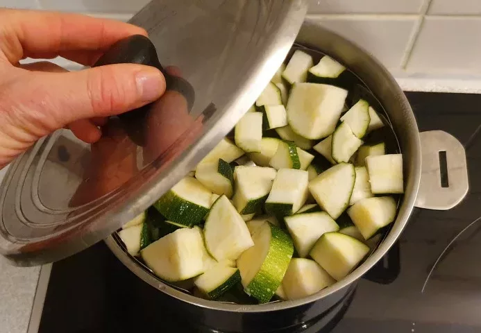 - 3Place a steamer basket in the bottom of a pot with 3 cups of water. Bring to a boil and add the zucchini. Cover and let them cook for 10 to 15 minutes.