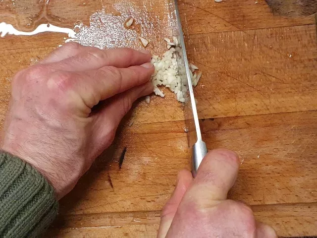 - 6Place the minced garlic in a small bowl, add the oil and lemon juice, then season with salt and pepper. Mix well with a fork.