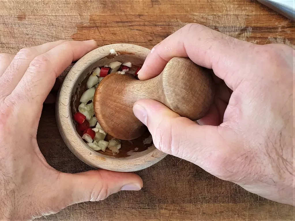 Another key ingredient, roasted peanuts, add a satisfying crunch and a toasty aroma to this delicious Thai mango salad.