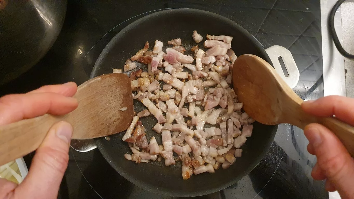 One final note: in this tried-and-true, much-loved recipe, I take the precaution of cooking the bacon bits down a bit so they render their fat… Okay, I agree, it’s not exactly a light dish, but might as well make it a little easier to digest without sacrificing the flavor 😋
