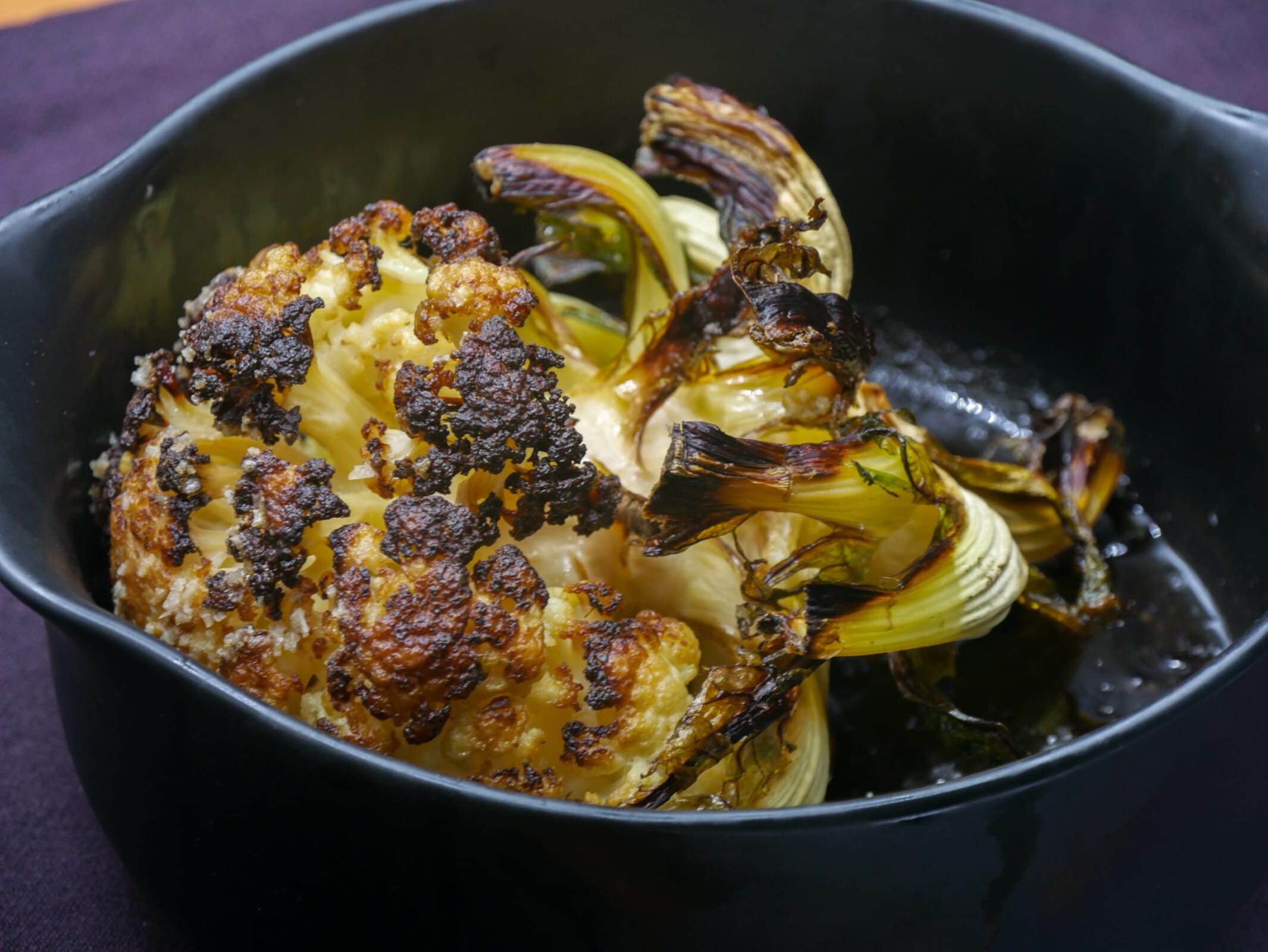 The cauliflower is coated in fat (oil, clarified butter, duck fat), and comes out of the oven tender, flavorful, and crispy… it’s truly wonderful! It can be enjoyed as an appetizer, a starter, or as a side dish with meat or fish.